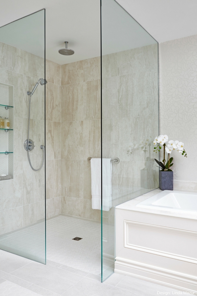 With its lovely layers of white and light, open feel, it's hard to take your eyes off this beautiful bathroom sanctuary. Linda Mazur, the talent behind the design, takes us through the renovation process in an exclusive Q&A with Beautiful Design Made Simple.