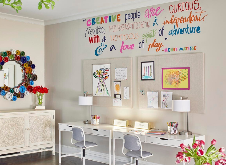 A creative place for two young girls was next on the list. The design team wanted to give each child a place to create, study, and find their own inspiration.